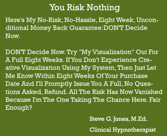 My name is Steve G. Jones, clinical hypnotherapist, and I have been helping people effectively master creative visualization through the power of hypnosis for over 25 years.